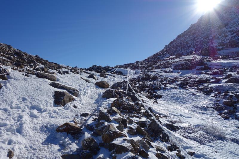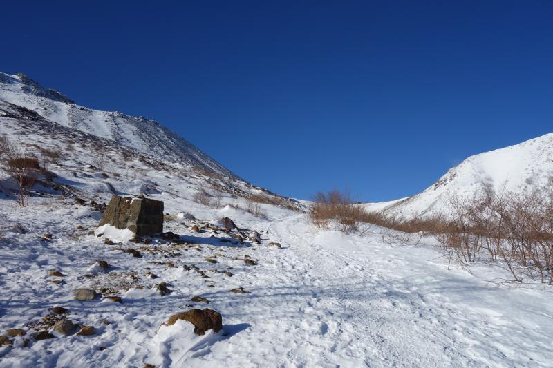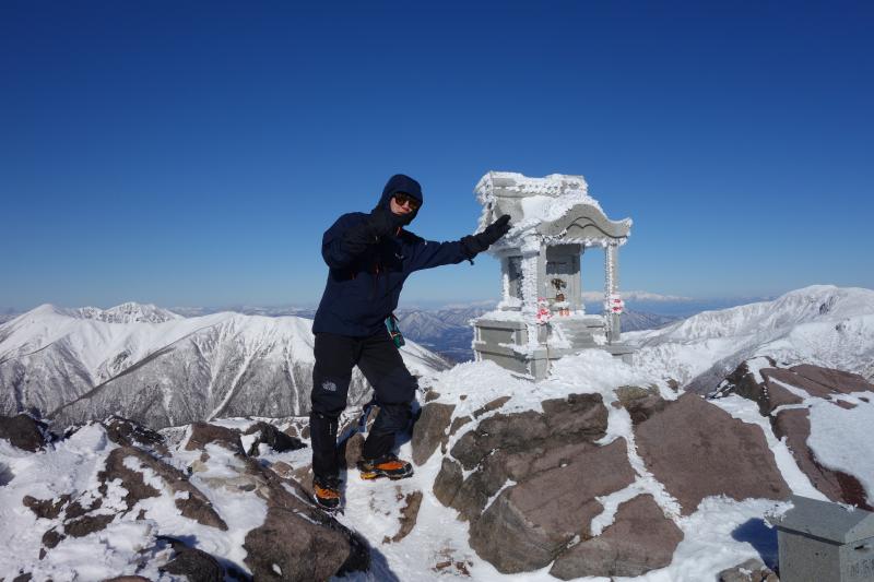 先週トライするも、冬の那須岳の洗礼とも言える強風に負けてしまい途中で引き返しました。今回はそのリベンジマッチです。この日は朝から晴れて天気は良好。そして一番気にしていた風ですが、冬の那須にしては弱いという絶好のコンディション。お蔭で無事に登頂が出来ました。那須岳は風の強さで難易度が変化します。強風の場合は無理せずに引き返しましょう。