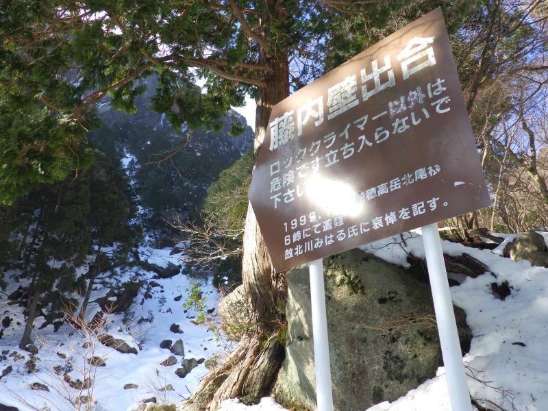 - 冬季ゲート前(10分)蒼滝東詰裏道登山口(36分)藤内小屋(25分)藤内沢出合(60分)コウモリ滝下(43分)3ルンゼ(10分)登山道(7分)中道下山口(50分)キレット(77分)中道登山口(25分)冬季ゲート前
