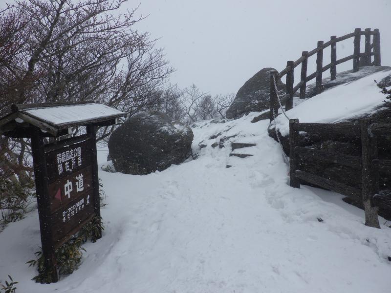 ⑪中道は9合目~8合目の鎖場が注意、キレットは今回は雪があまりついていなく、3合目の裏道分岐下くらいまでは雪がありました