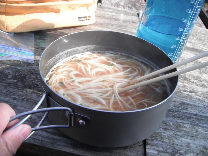 ここでのんびりラーメンを作ります。山フライパンはラーメンどんぶりとして最適です!