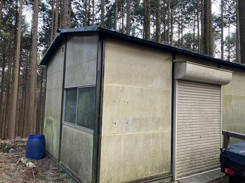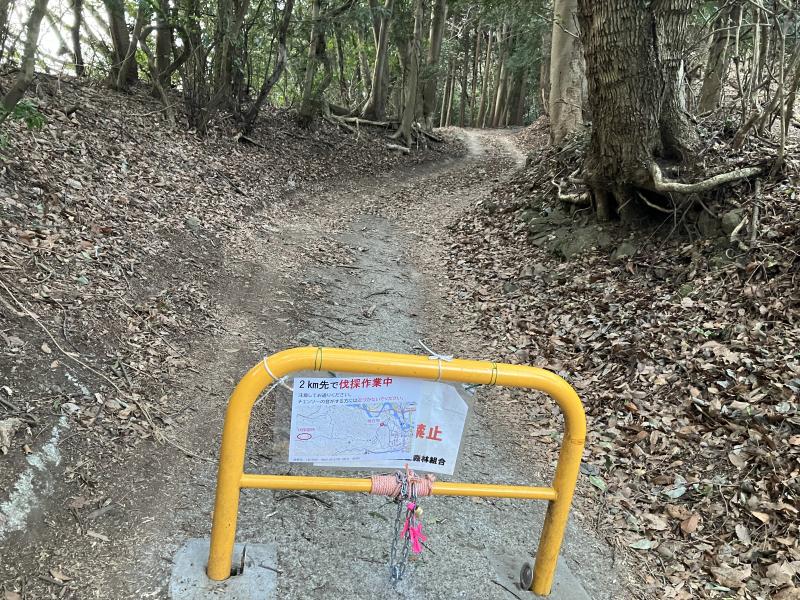 鳥手山登山口から林道を40分くらい歩くと、プレハブ小屋があり、そこが林道終点です。直後の道が崩れているので、そこは注意して歩いて下さい。