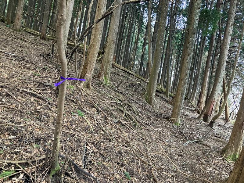 そこを抜けるとルート不明瞭な箇所(山と高原地図にヤブ深いと記入ある箇所)、落ち葉で道が分かりにくい箇所もありました。