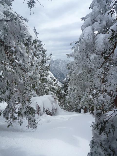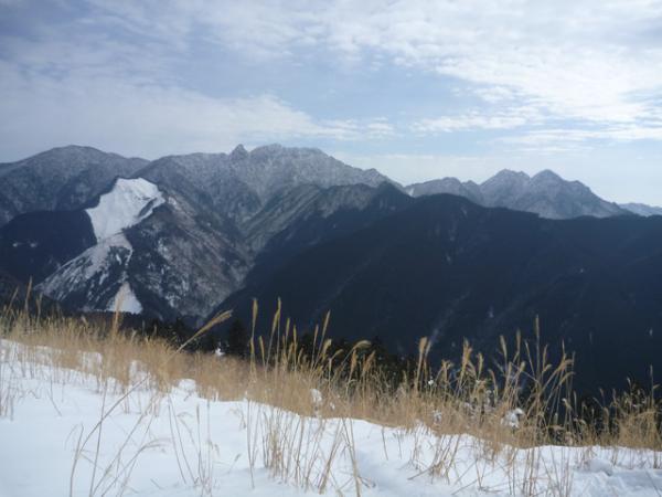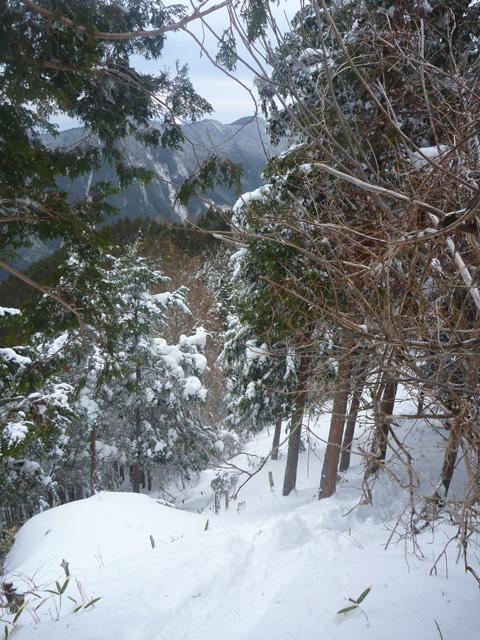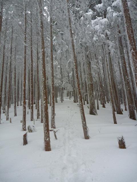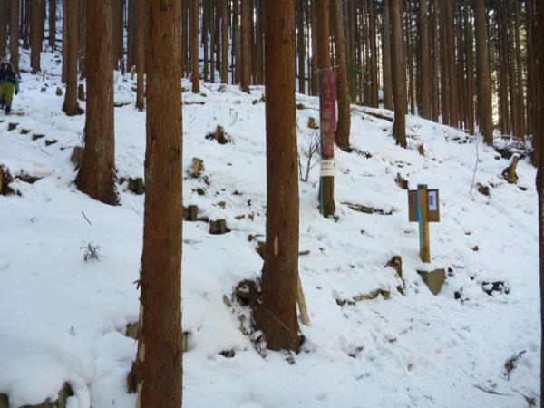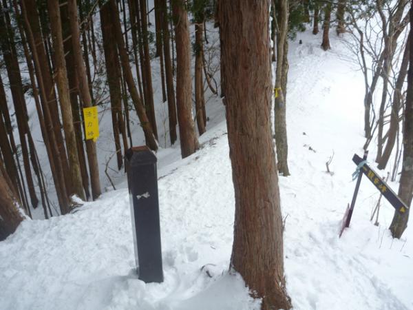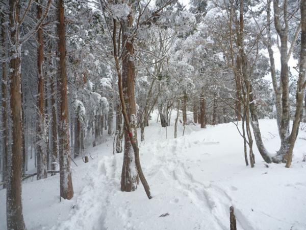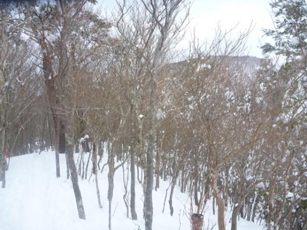 観音峰から三ツ塚までは雪がフカフカでワカンが必要です。