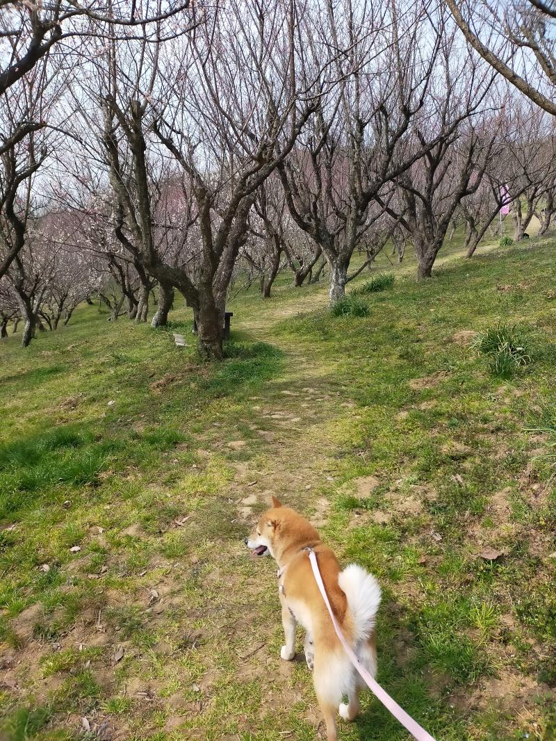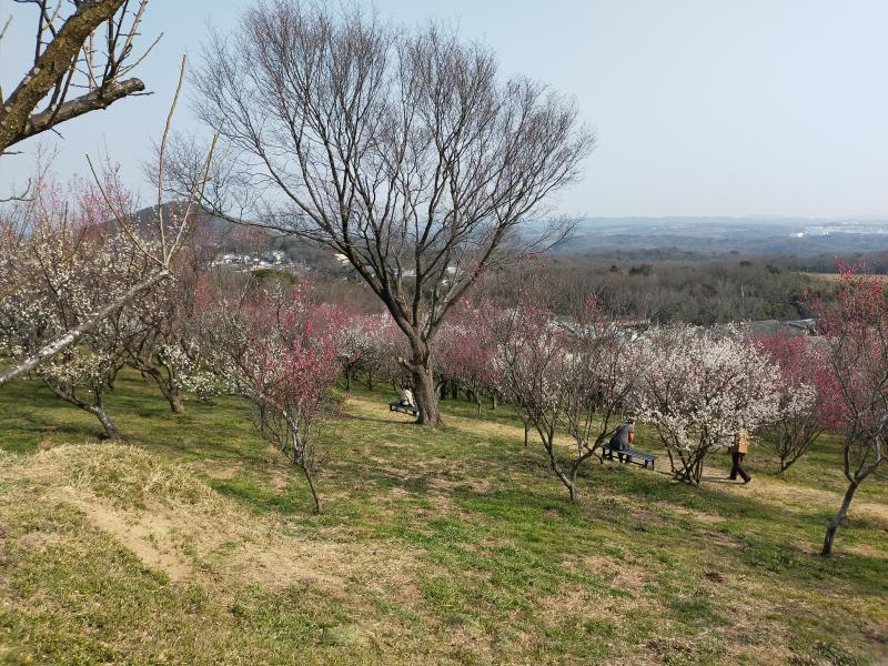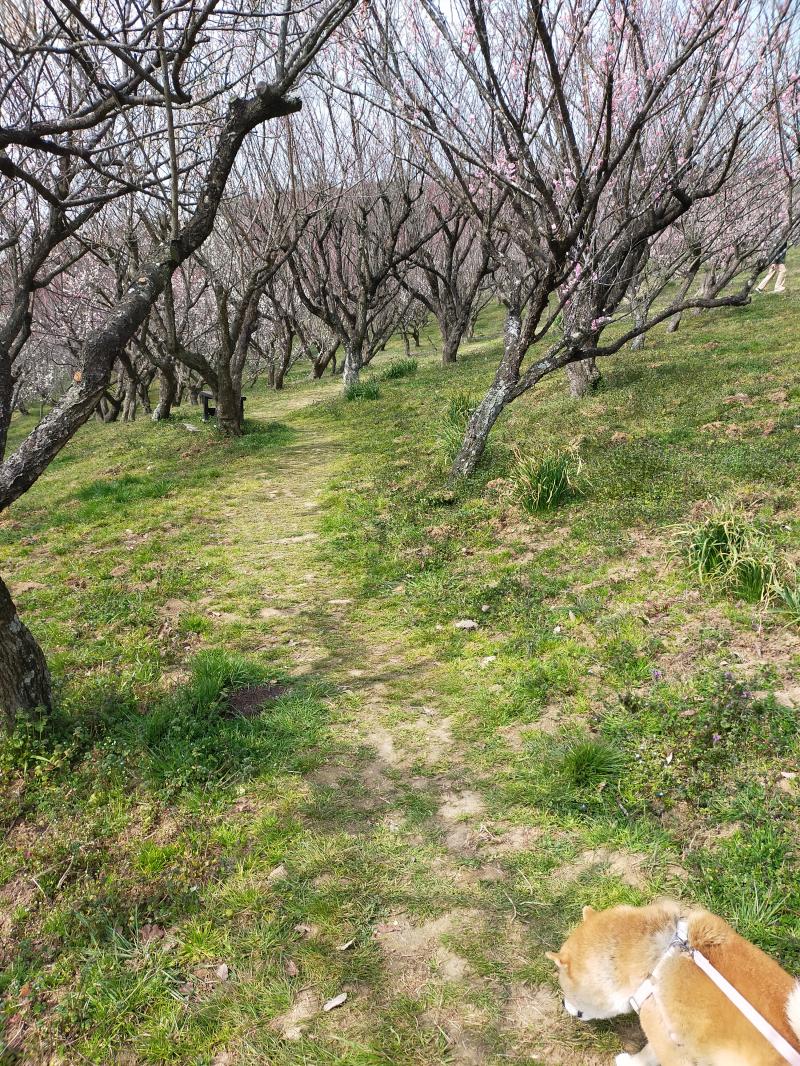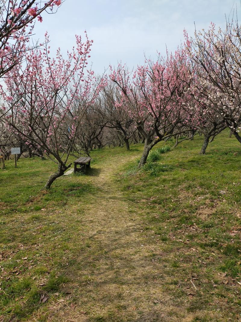 - 梅林の散策路は急な斜面もなく歩きやすいです。梅林には、いろんなところに椅子があり、本殿近くにお手洗いもあります。