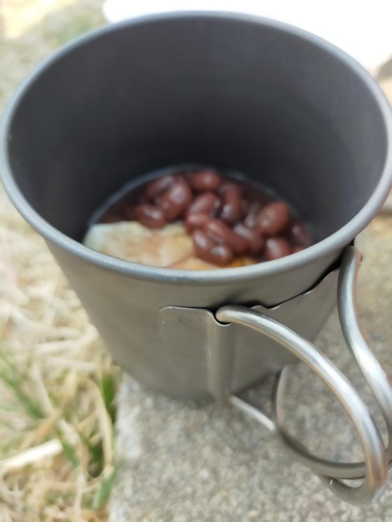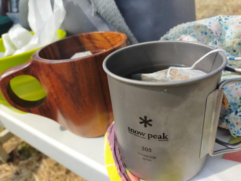 今回は、よく使う折りたたみ式のコップではなく、snowpeakのシングルチタンマグ。長居してお喋りするのに、水分補給で紅茶たくさん飲めるように、持ちやすさのいいこちらを。シングルなので、保温性が少ない分飲みやすい温度になってくれました~。