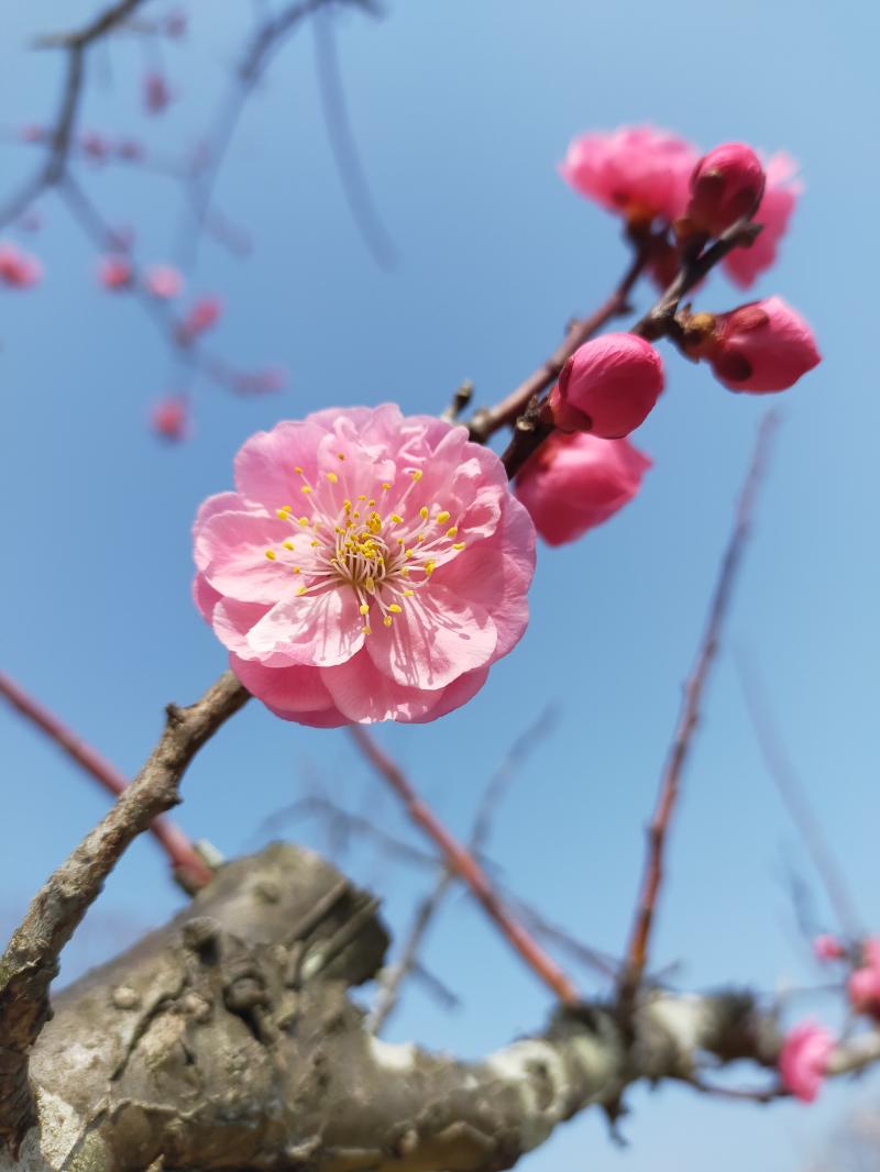 今はちょうど梅がきれいです。しだれ梅や、八重の梅も咲いていました。