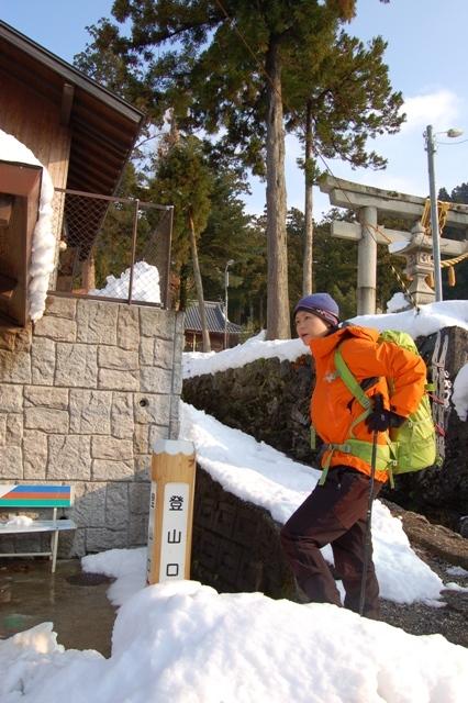 バス停の近くには公衆トイレと神社があり、そのすぐ脇に登山口があります。