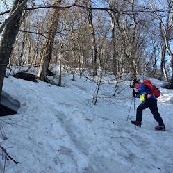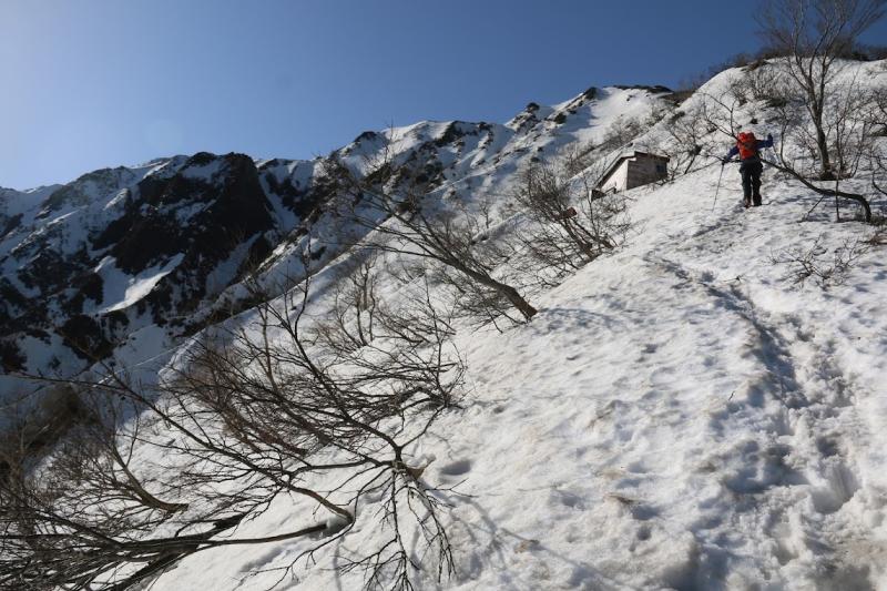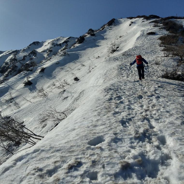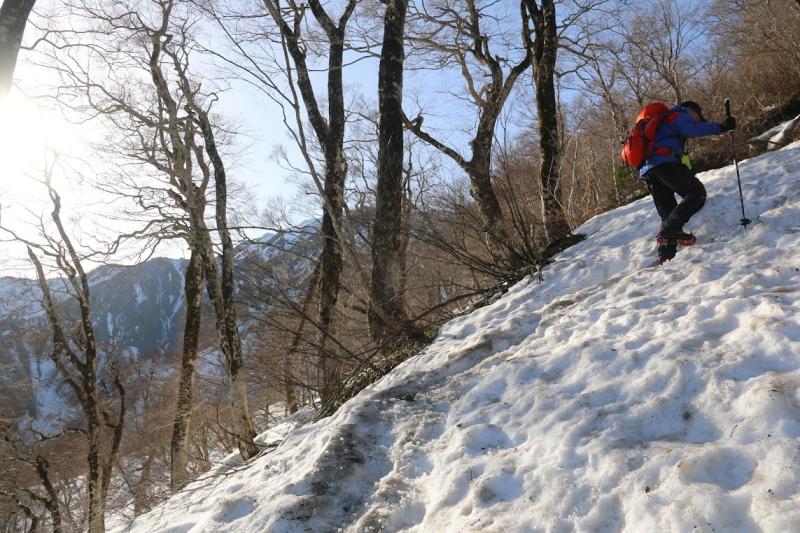 雪が柔らかく、厳冬期積雪時よりもやや歩きにくかったです。