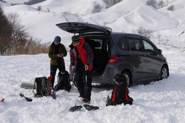 特に駐車場近辺は圧雪されておらずタイヤが空転して車が前に進まず苦労する場面も・・・。