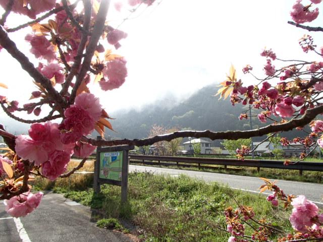 ・それでも目的地に向かっているのは間違いないので、気を取り直して水分かれ公園を目指します。登山道が終わり、前方に鉄製のゲートが見えると水分かれ公園です。綺麗な公園には八重桜が咲き誇り、ゆったりほっこりした気分になります。日本一低い分水嶺の指標を写真に撮り、今日の登山も無事終了です。いやぁ~、大満足の一日でした!!