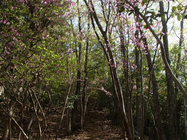 ・宝来山から蛙子峰に戻り、再び周回コースで硅石山へ。ここからは雰囲気が変わり、植生も少し変化します。ヒカゲツツジは見れなくなり、ミツバツツジが咲き誇っていました。標高も下がって行くので展望も少なくなり、登山が終盤になってきていることが感じられ、少し寂しい気分になって行きます…。