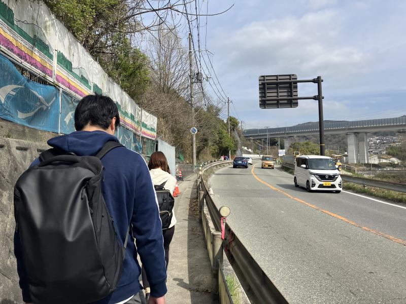 スタートのJR生瀬駅からまずは車が頻繁に行き交う道路沿いを歩きます。