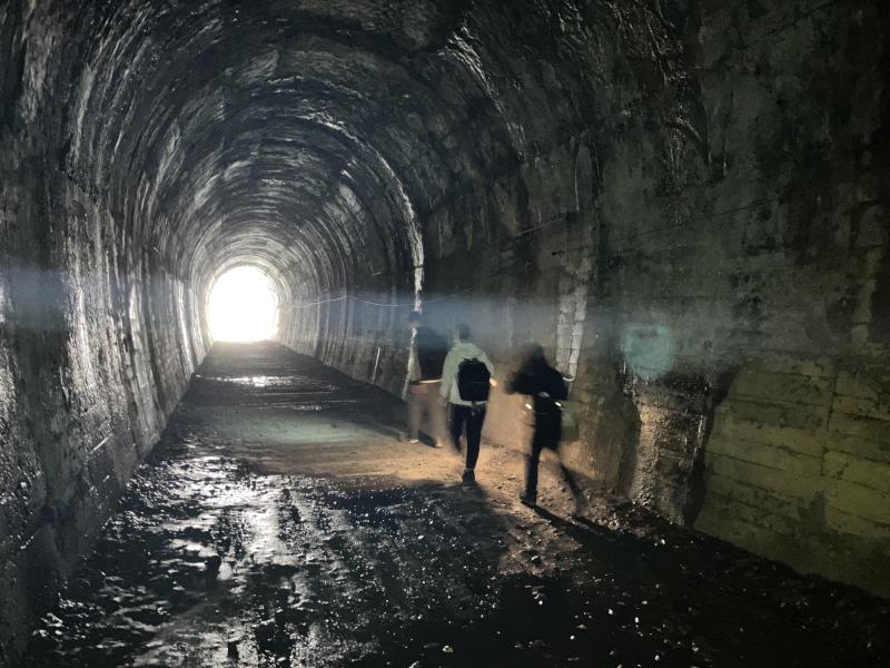 1つ目のトンネルが見えてきたところで、ヘッドランプや懐中電灯を準備します。