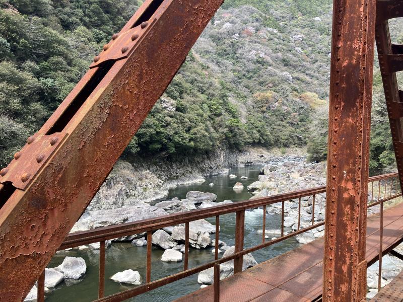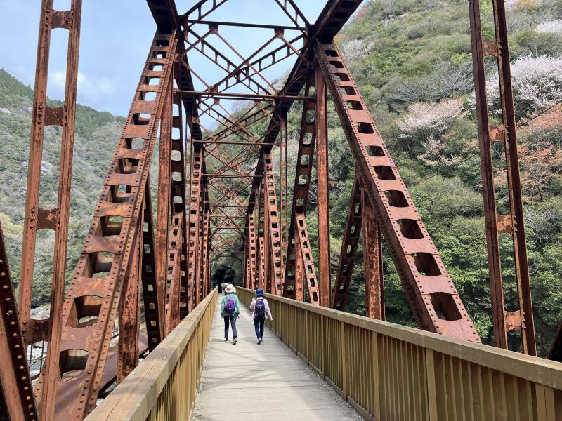 すぐに渓谷沿いに廃線跡が出現し一気にテンションが上がります。
