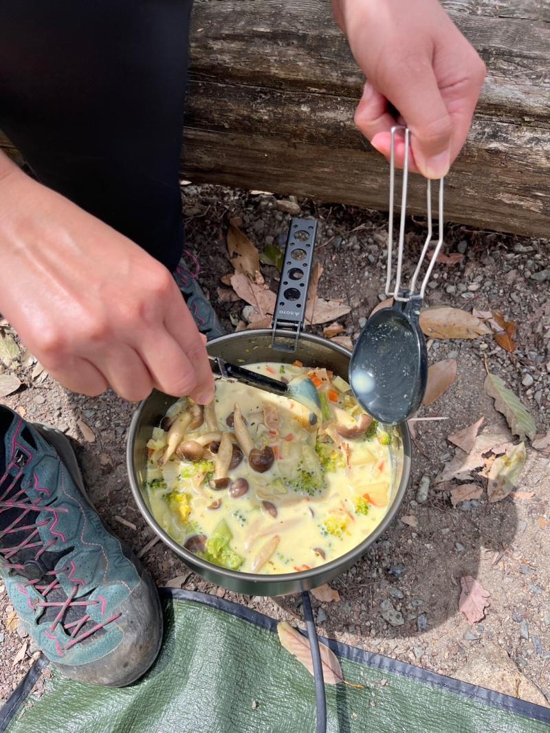 私も久々に山ごはんを作りました。(張り切り過ぎてバックパックが70Lとなり、友人は何も言いませんでしたがドン引きしていた様子。。)
