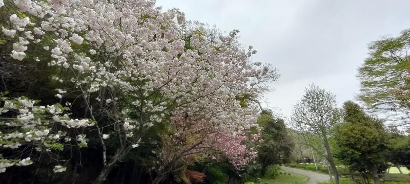 逆に、祐泉寺付近ではシャガ、二上山ふるさと公園付近では八重桜が満開を迎えていて満足のお花見ハイキングとなった。