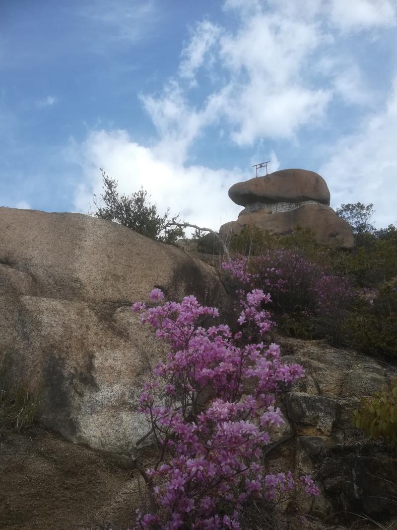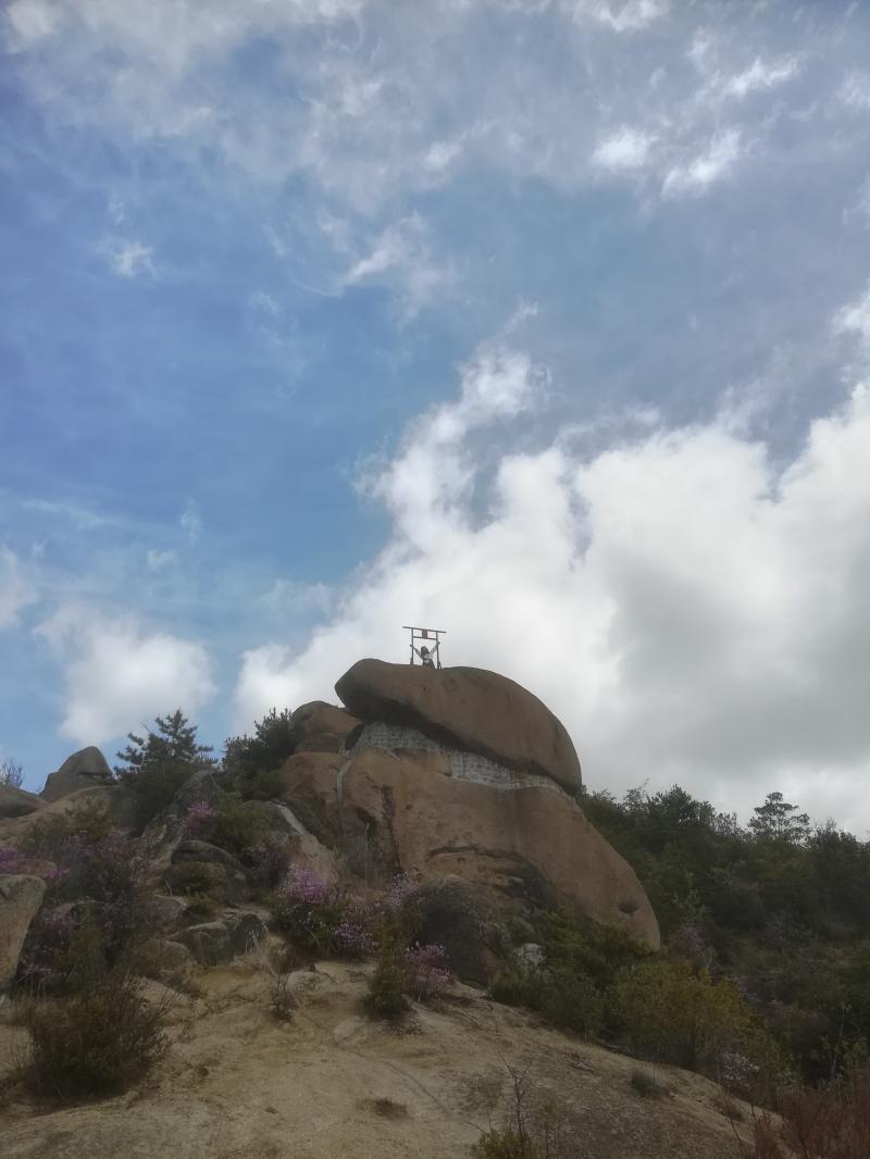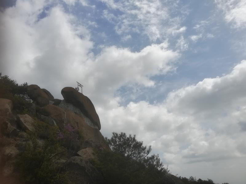しだいに巨岩が増え、花崗岩が風化した道は滑りやすくなりましたが、上に「天空の鳥居」が見えてテンションアップ。