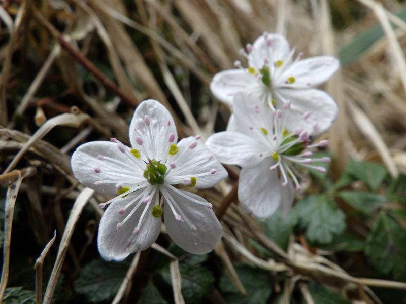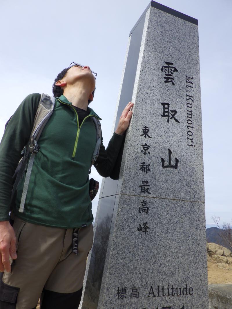 白岩山あたりで雲取方面から下ってきた登山者とすれ違いますが、時間的にも宿泊者でしょうか?ここですれ違うということはいいペースできています。ほとんど休むことなくあっという間に雲取山荘へ到着、ここの水場が冷たくておいしいです。山頂まではバイカオウレンが至る所で咲いていて、小さな花でも白いのですぐにわかります。花を見ながらゆっくり歩いても30分もかからずに雲取山頂へ。快晴の山頂は白い富士山、両神山や甲武信ヶ岳など展望が抜群でした。避難小屋の温度計を見ると気温5度とありますが、風もないので過ごしやすい感じです。