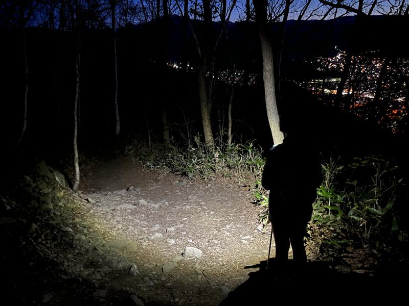 暗くなってからの下山ではヘッドライト「BD COSMO350」が大活躍。