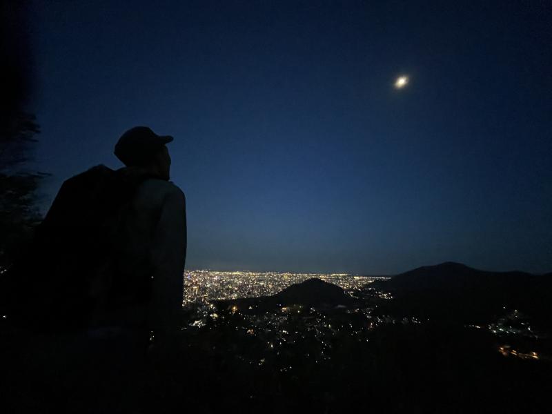 広い山頂からは明るいお月様と札幌市街地の夜景が綺麗に見れました。