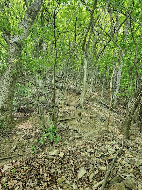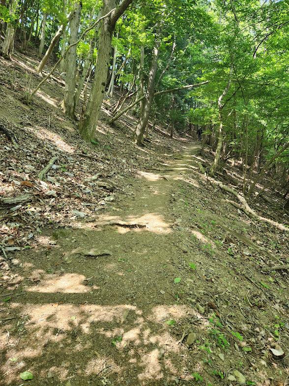 新緑が眩しい。ずっとこんななだらかな道ならいいのに。