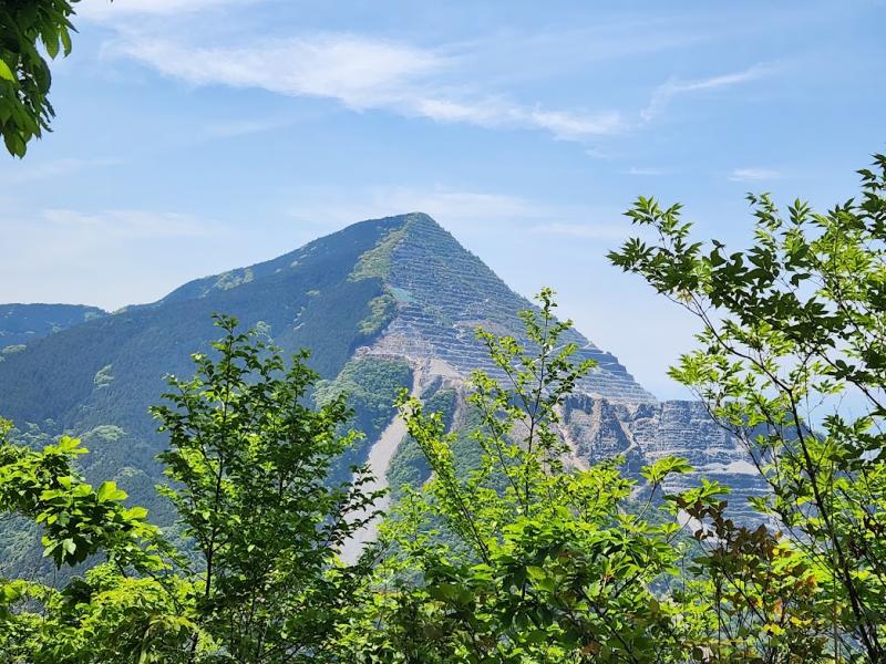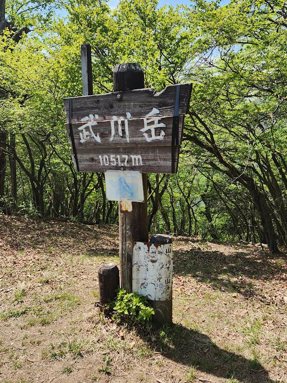 何とか山頂を踏んで、体力があるうちに次の武川岳へ向かいます。途中木々の間から武甲山が顔を覗かせていました。秩父といえばこの武甲山。関東に転勤して初めて登った山であり、登山復帰してから最初に登った山でもあります。秩父札所巡り中は常に見守ってくれていた思い出深い山で、この武甲山を眺めながら歩けるのも今回のルートの魅力。相変わらず石灰が削り出されていましたが、晴れた日に勇壮な姿を拝めて満足でした。