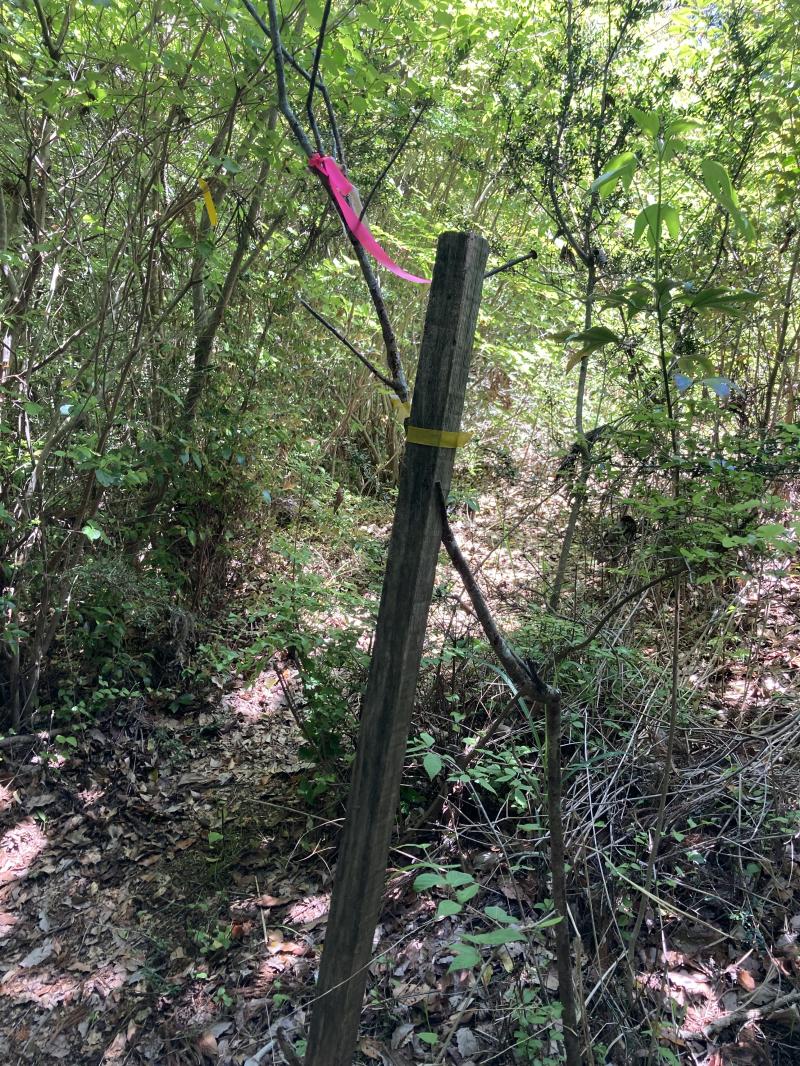 集落から高峰ノ森まではかなり藪がちな道で歩きにくいです。