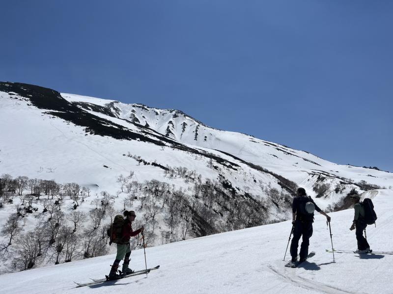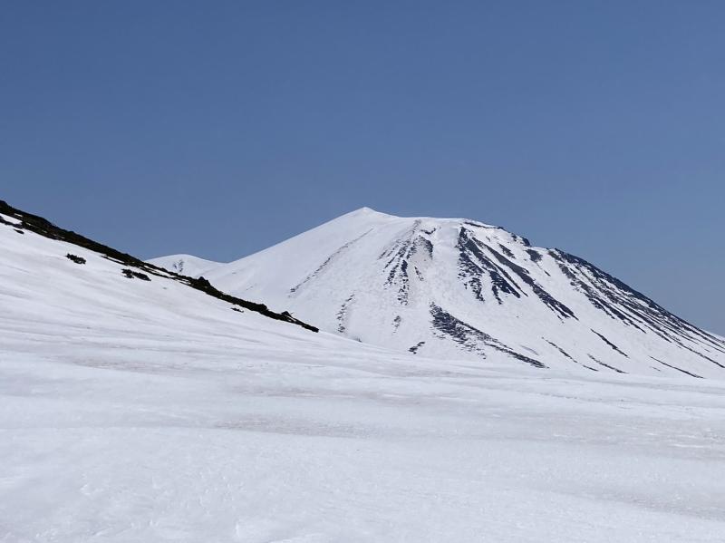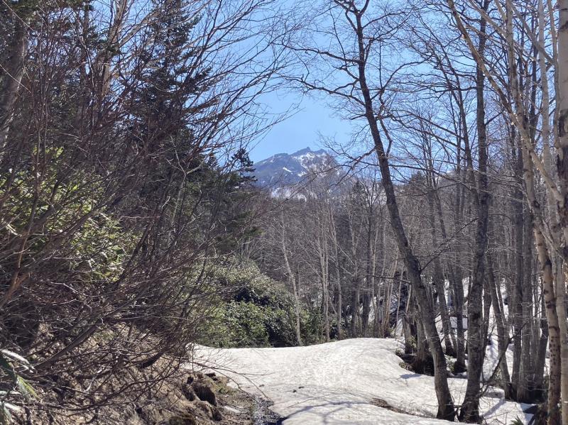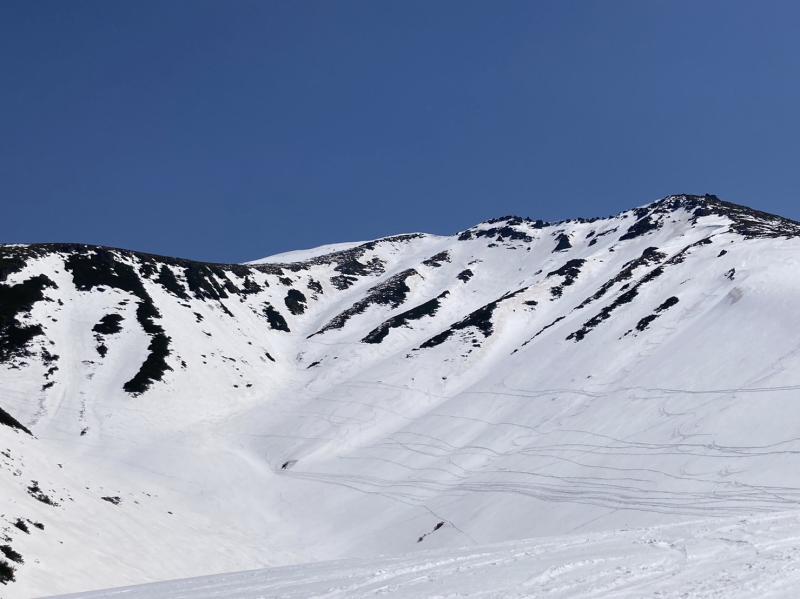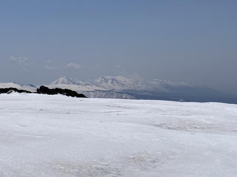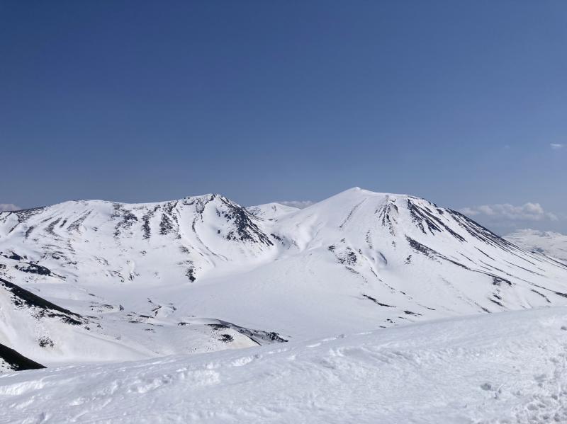永山岳、当麻岳の急斜面にしっかり雪が残っています。