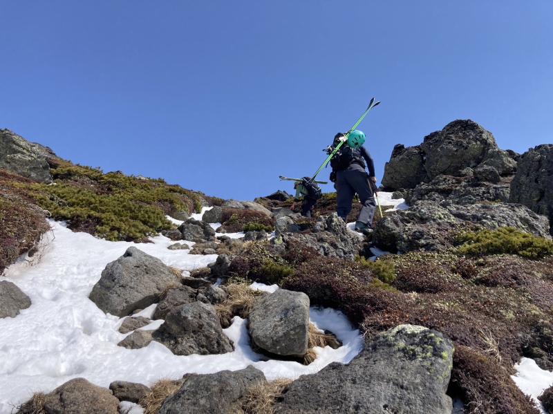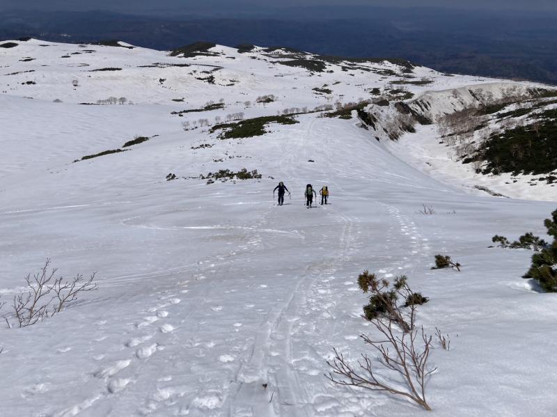 急斜面を登り切ると、1300m付近で木はほとんどなくなります。