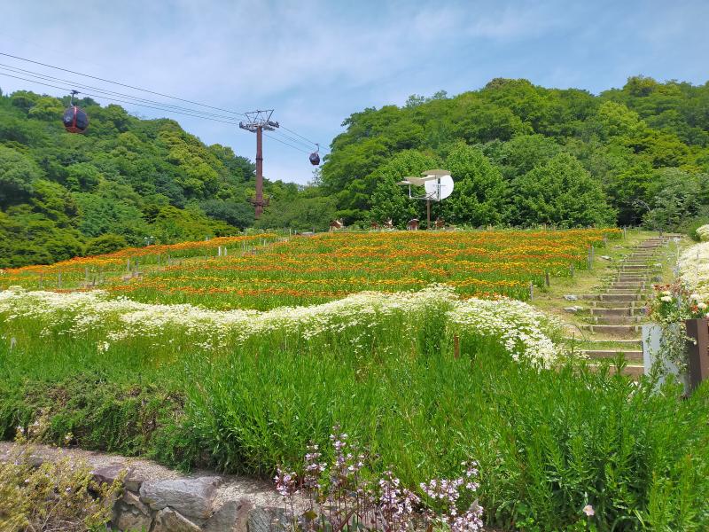 ハーブ園はハンモック広場のベンチで休憩したのですが、上に登っていく途中にも、いたるところにベンチやテーブルがあり、花を見ながら休憩を楽しめます!