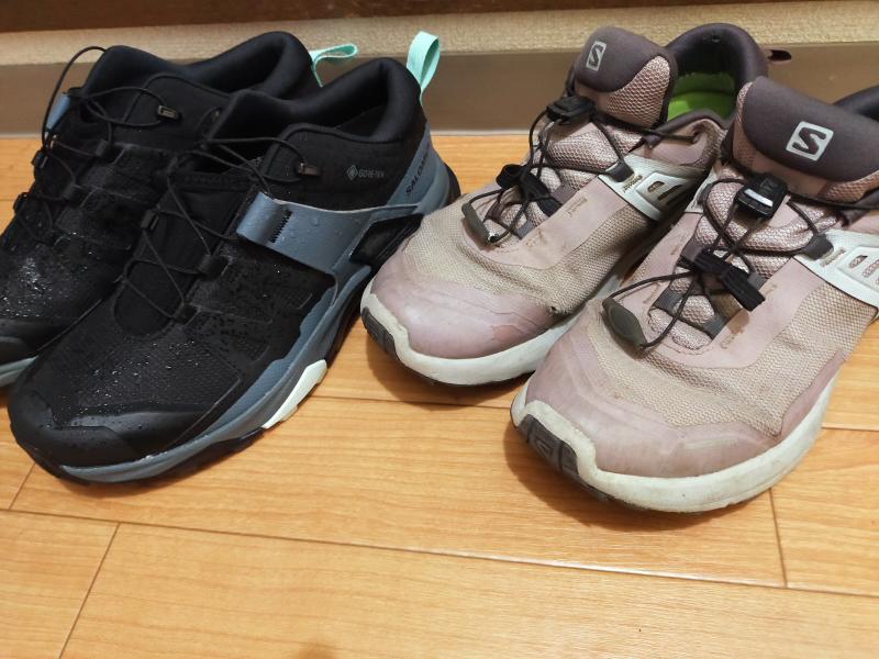 帰りは神戸の好日山荘で、新しいローカットをゲット。早速防水スプレーをふって、翌日の雨に履いていきます!