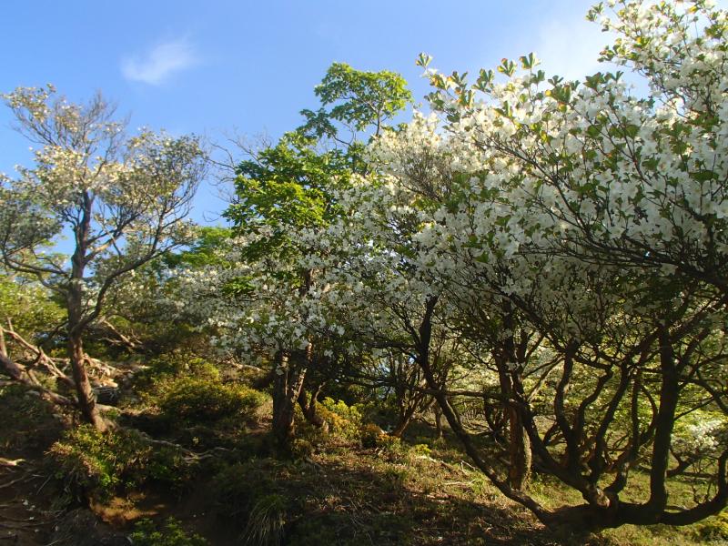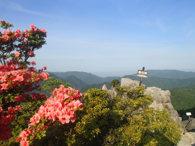 ・徐々に標高を稼いでいくとシロヤシオの花が点在してきます。さらに進んで「重ね岩」ひ着くと、見事な展望 満開のシロヤシオ!!もう、いう事なしの風景が目の前に現れます。これはホントにきてよかったぁ~!!!
