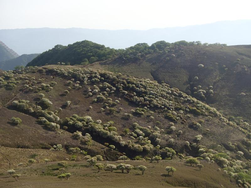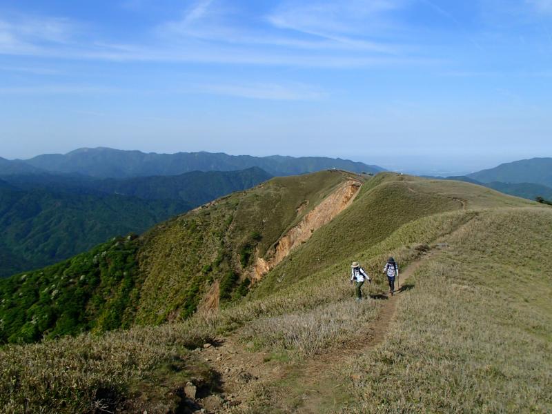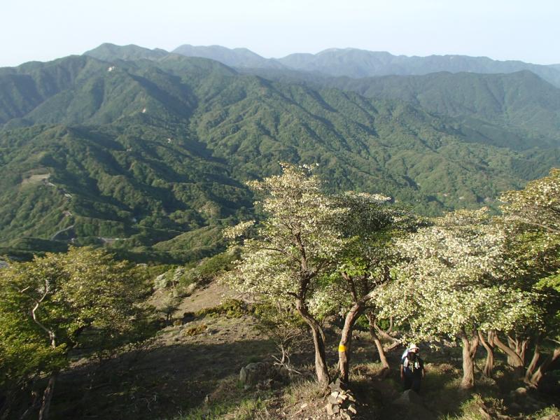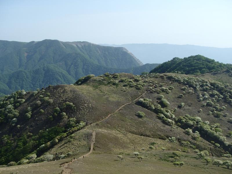 ・シロヤシオやドウダンツツジの花を愛でながら登って行くと、いきなり展望がひらけ、たおやかな山頂までの道が現れます。これは人気になりますわ、このコースは。ここからはたいした登りも無く山頂まで展望を楽しみながら歩くだけです。