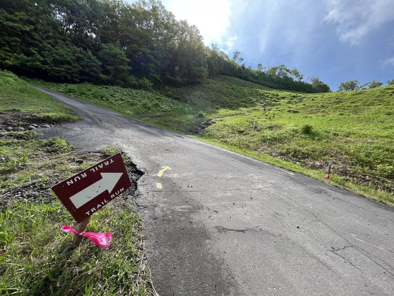 コース上には大会のルートを示すフラッグが設置されていて、今回登ったスキー場の激坂登りコースも含まれていました。