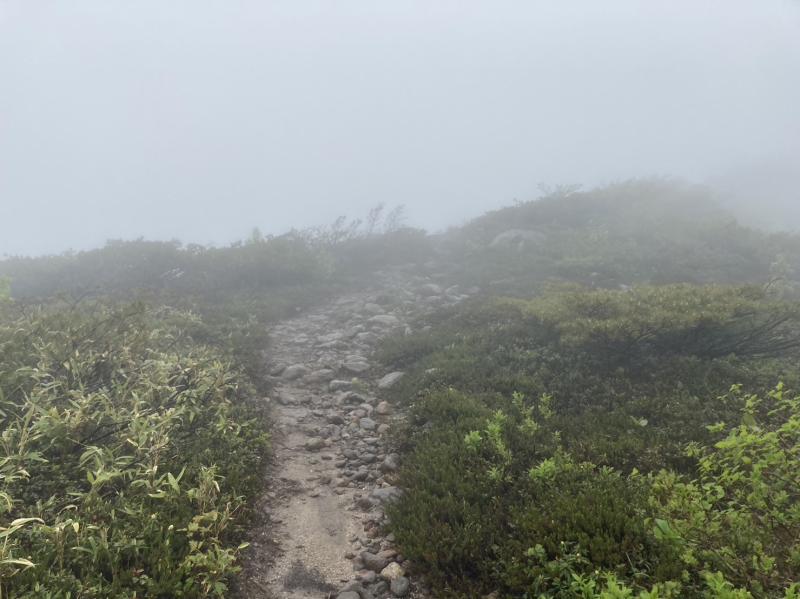 登り出し時点では、ガスはあるものの風も弱く、雨も降っていない。