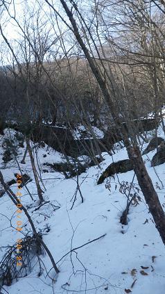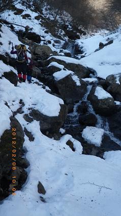 - 裏三つ峠四十八滝→氷結状態X 三段の滝付近枝沢→氷結状態△