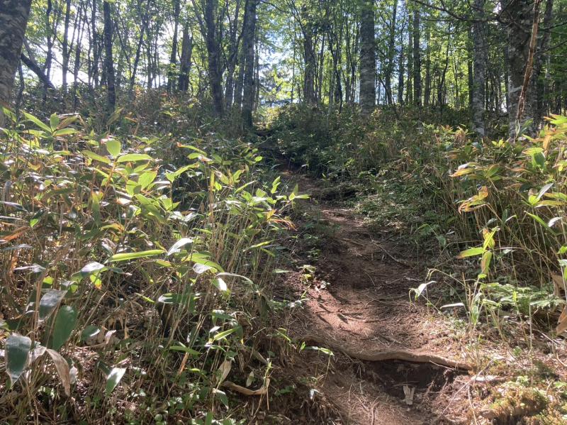 少しだけ歩きにくいトラバースの後は100m程登れば山頂です。
