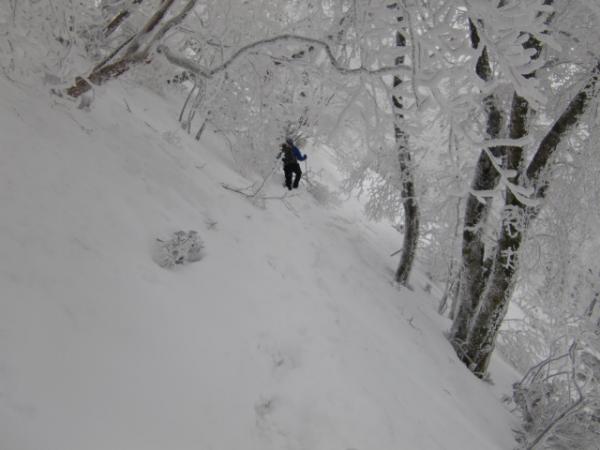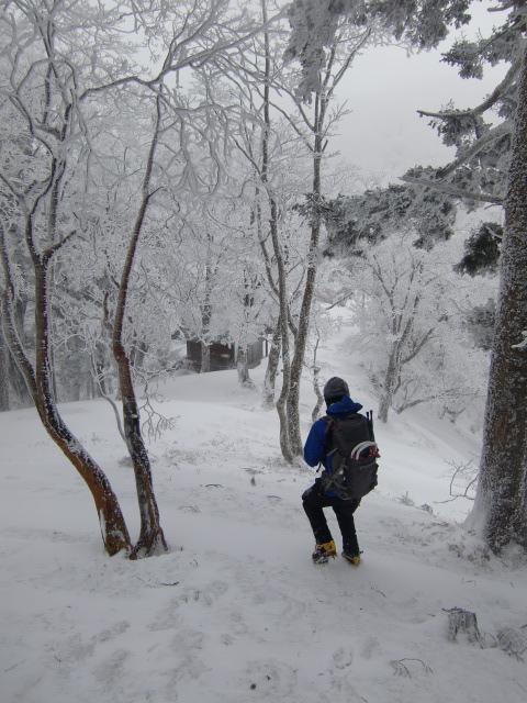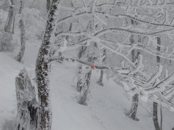 道が雪で全く分からない状況で、下山時も自分たちのトレースもなくなっていました。