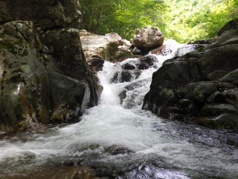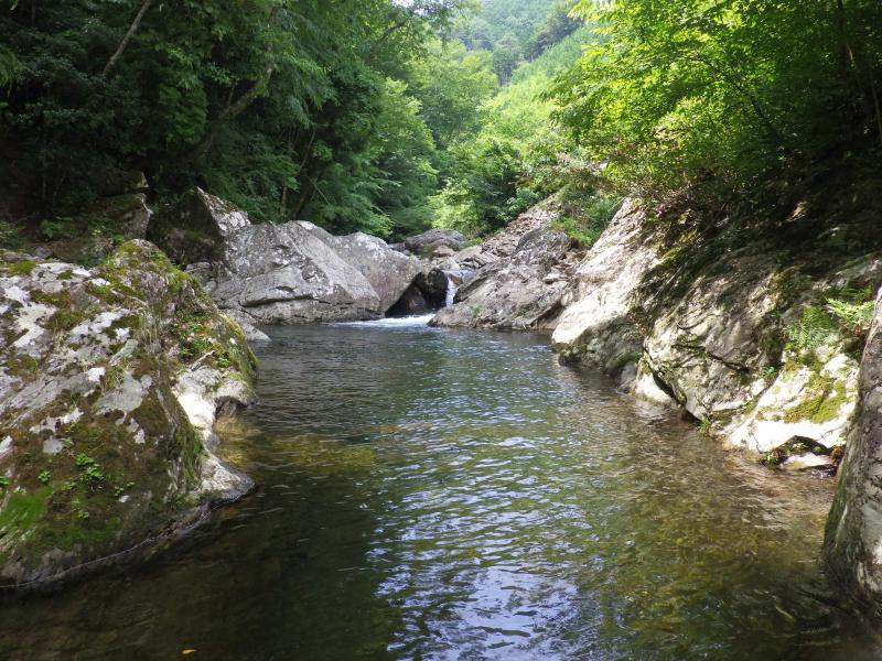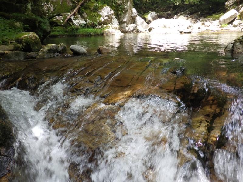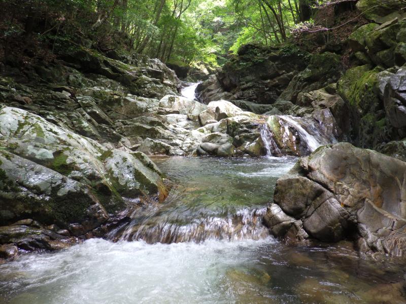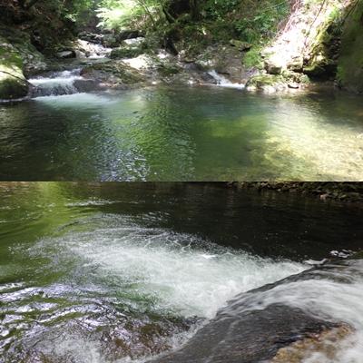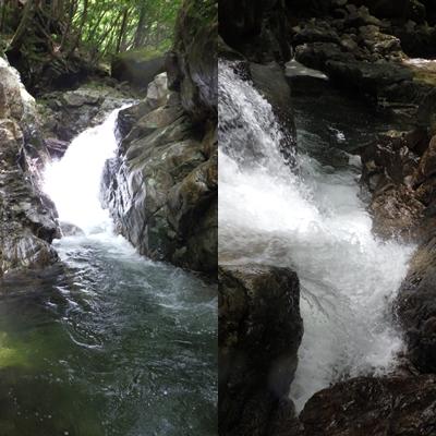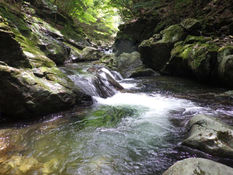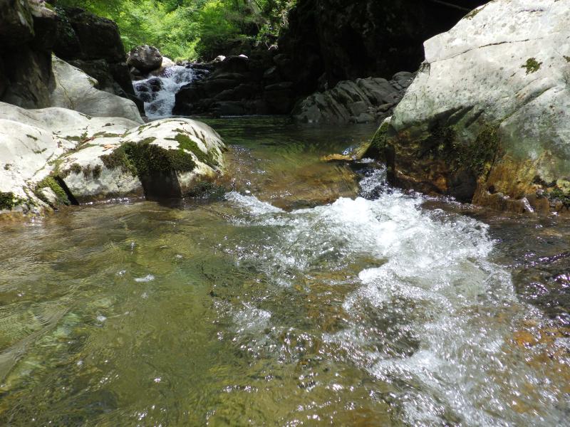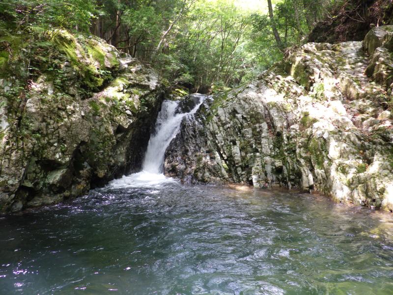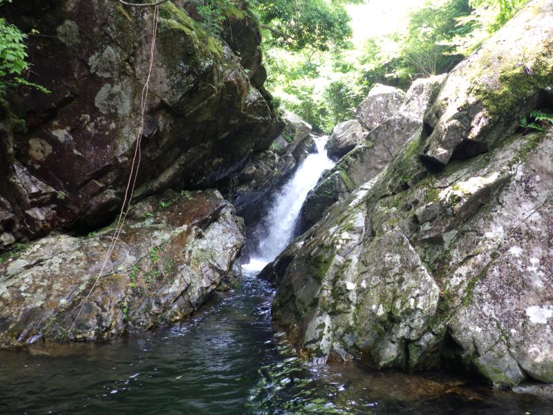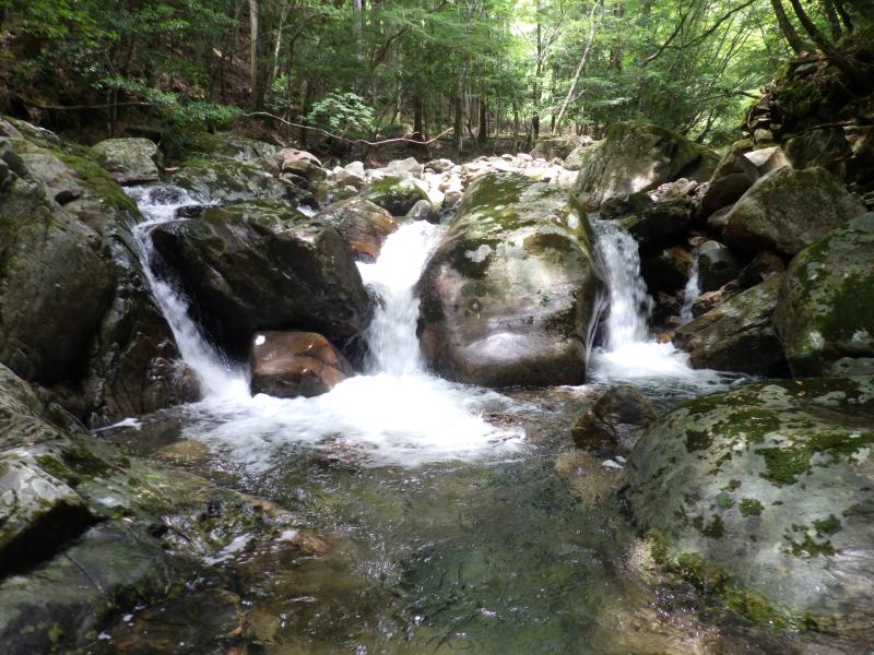 沢自体ですが、規模は小さく、また最源流部ではないので、水量もある程度あり、特徴的な滝は3つあり、この滝を登るならばロープをつけてのシャワークライミングを要します。釜も多く、泳ぎやへつる箇所も適度にあり、小滝は登れるので短いながらもコンパクトにまとまった沢で初心者を連れて来るにはちょうどいいかもしれません。
