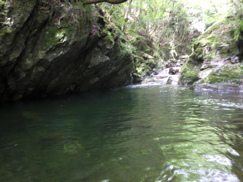 ➂滝らしい滝は4本あり、1本目は幅広滝、2本目は5mくの字(狭い裏見滝)、3本目は5m滝、4本目は3m滝でいずれも巻けます。2・3・4本目は釜を泳いで取り付きますがザイルがあればかなり安心します