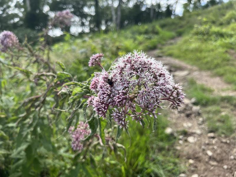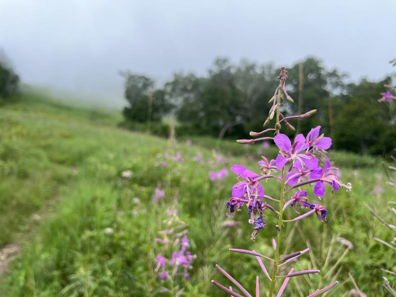 自分も汗だくで頑張って登りながら、時々景色や花を観察して息を整えます。