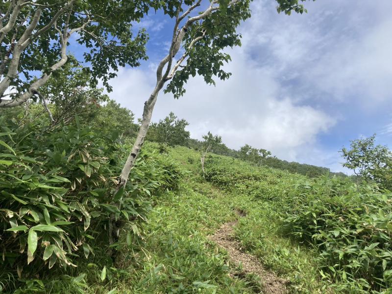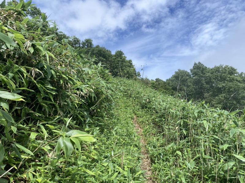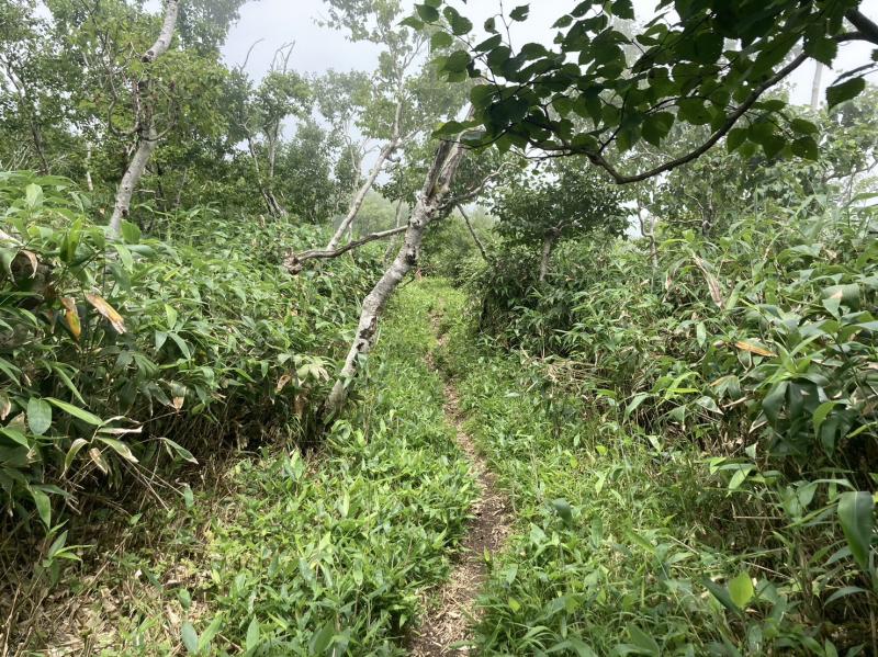 途中、エゾイラクサが登山道の両脇から出ているので、
