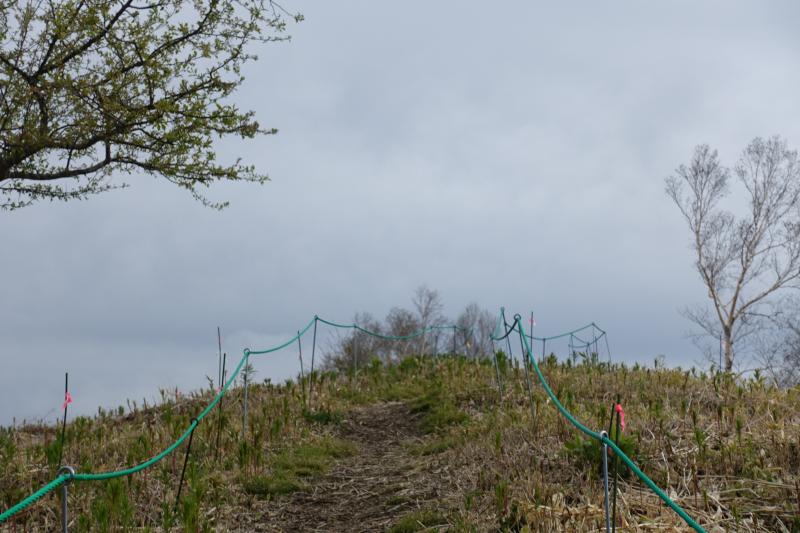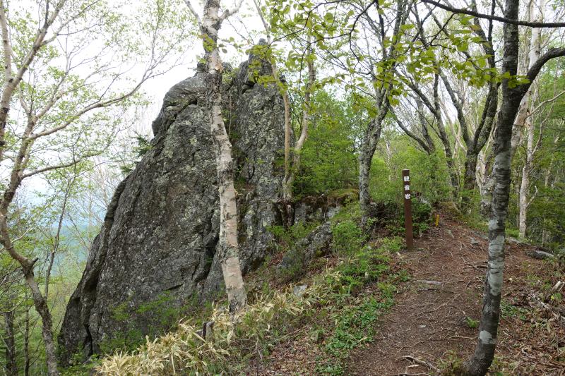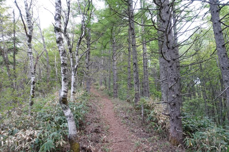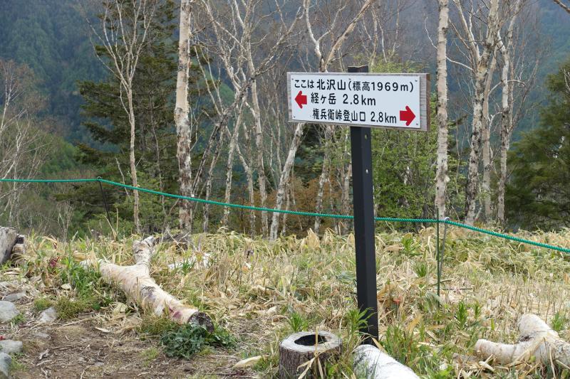 すごく整備されていて気持ちいい道です。快適な道を歩いていくと北沢山に到着ここでようやく半分くらい。目指す経ヶ岳が見えますが、意外に遠く感じます。