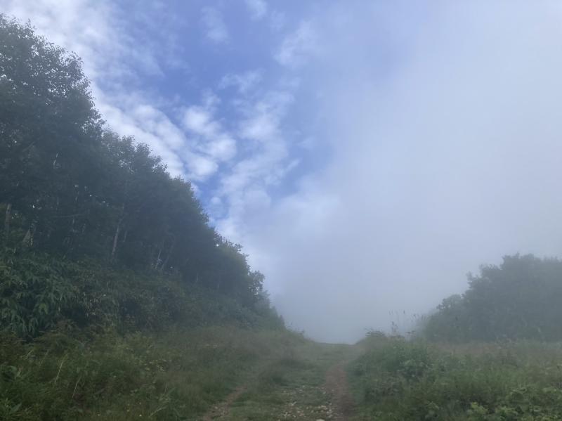 そのまま進むとスキー場のピーク手前で青空になりました。