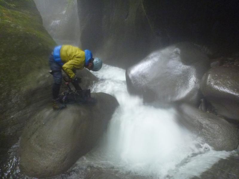 なんとか足払いの滝を超えましたが、非常な水圧に二丈滝までは辿りつけませんでした。
