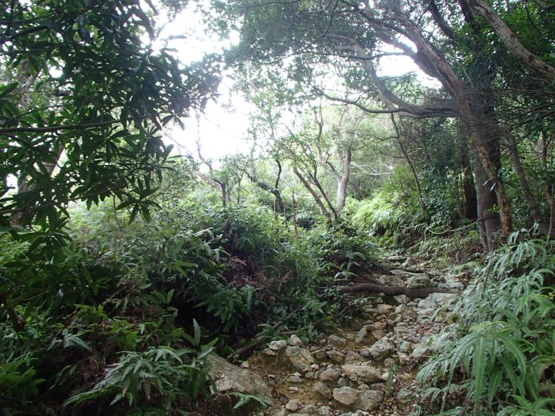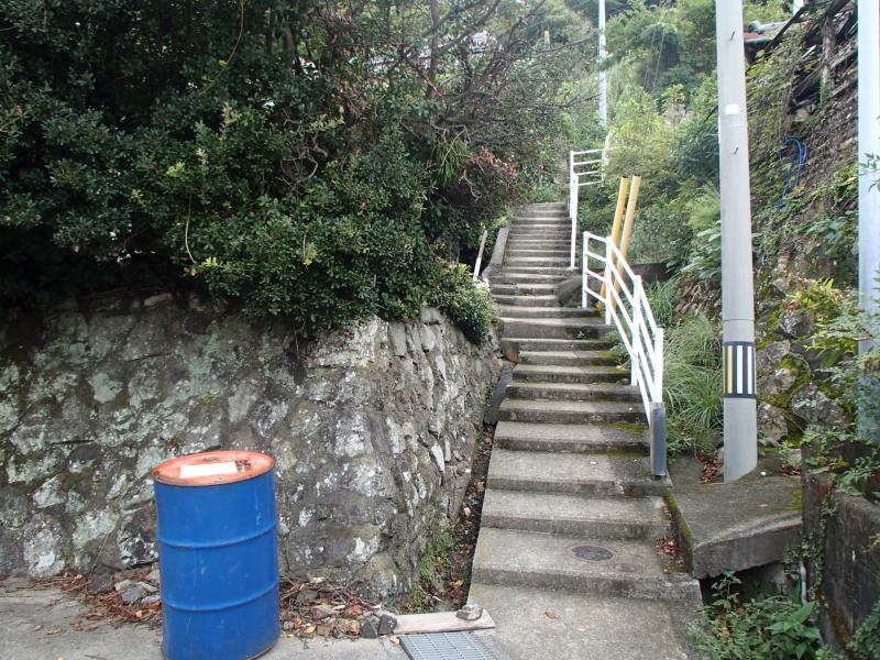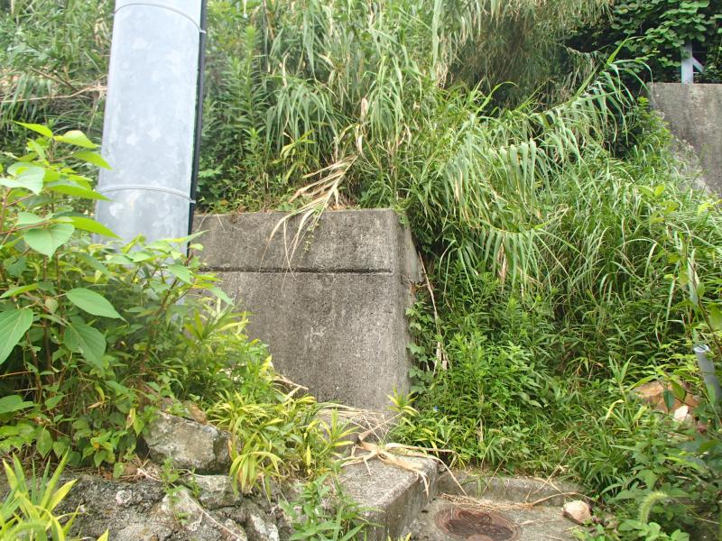 ・駐車場から民家の並ぶ間の階段を登ると登山道に入っていきますが、んっ?左右共に民家の入り口だし、正面はくさで覆われ行き止まりっぽい…。でも正面しか行きようがないのでガサガサ進むと有りました、登山道が。