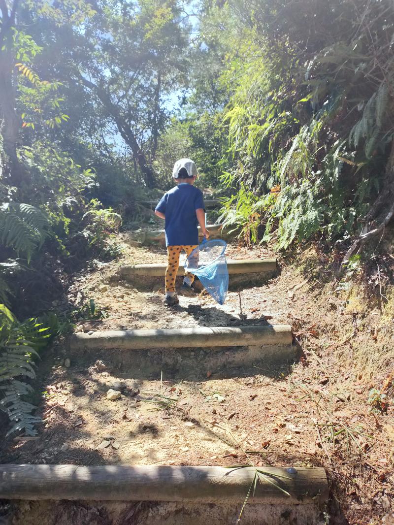 - 前回は雨の翌日で道が川になっていましたが、今回はお天気もよく、ぬかるみはほぼありませんでした。上りでは気づきにくいですが下りだと滑りやすい箇所もあるので、ゆっくりおりてください。