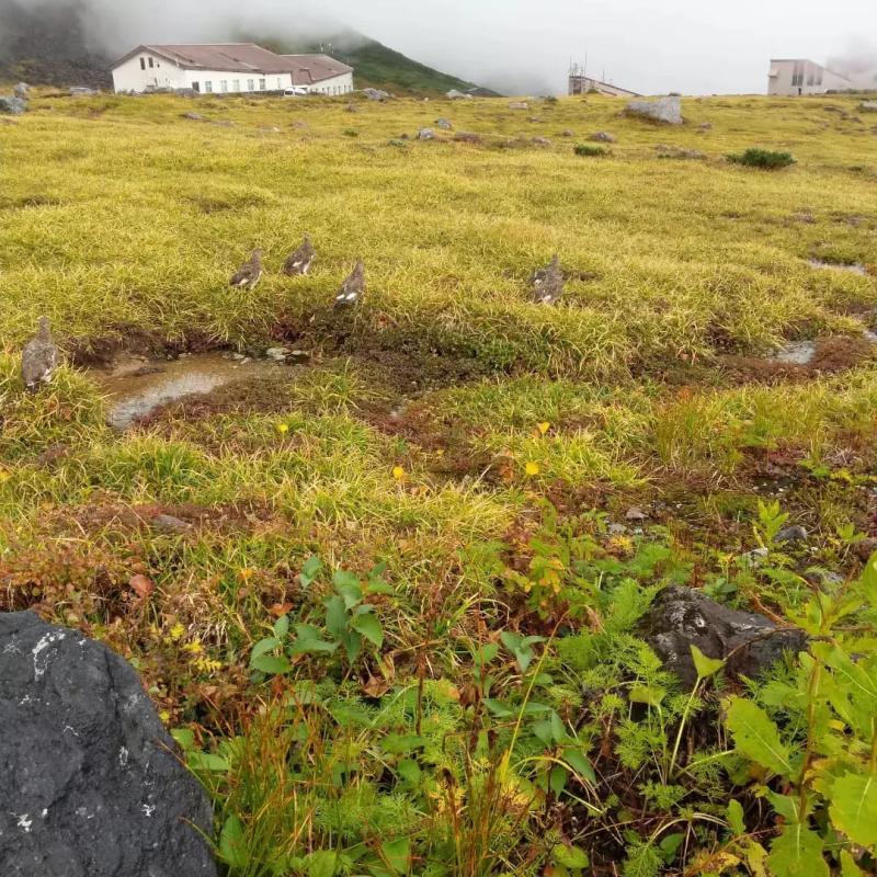 さらに奥には14匹の雷鳥集団です。資料館にて平成28年に284匹観測されている雷鳥さんの一割位に会えた計算です。