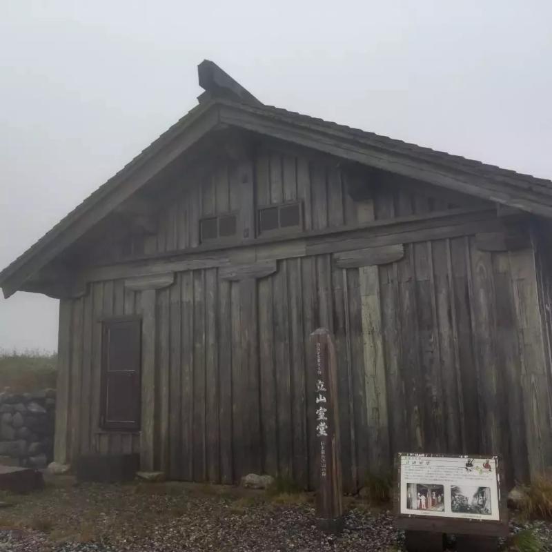 雨が小康状態になったみくりが池温泉から室堂山荘へ向かいます。江戸時代に建てられた日本最古の山小屋を見学致しました。室堂の名の由来の場所です。