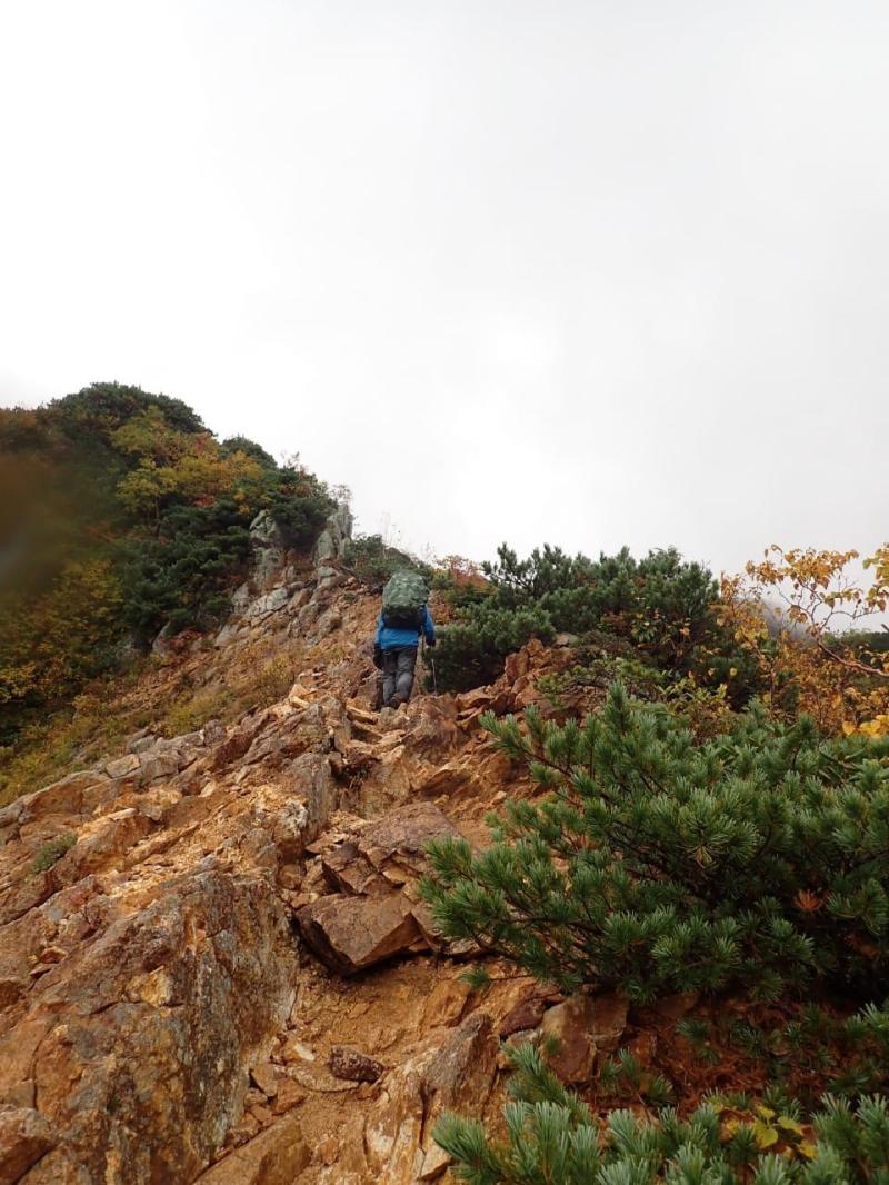 東鎌尾根もはしご場も多く 慎重に進みます。